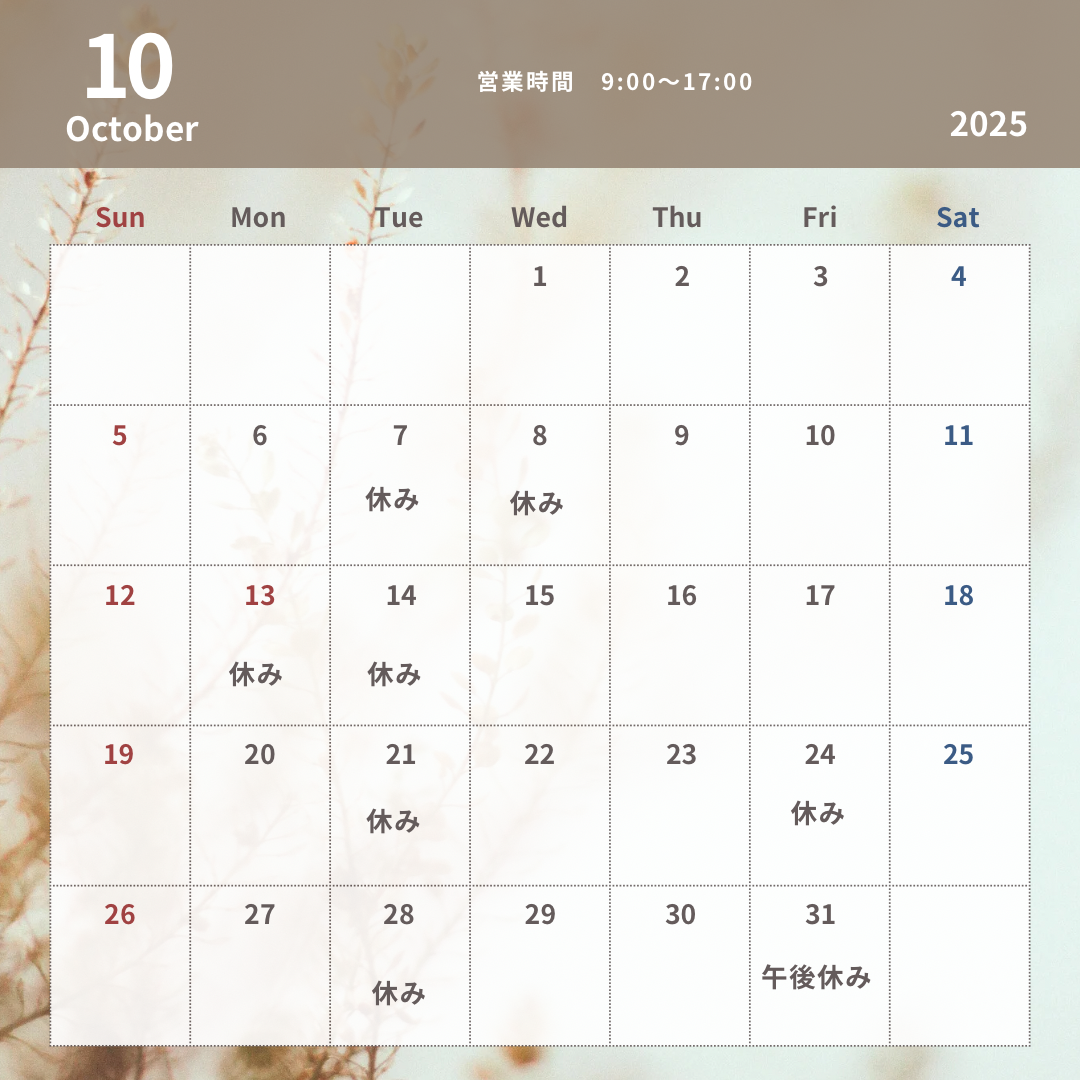OPEN/9:00~17:00 定休日/火曜日・不定休