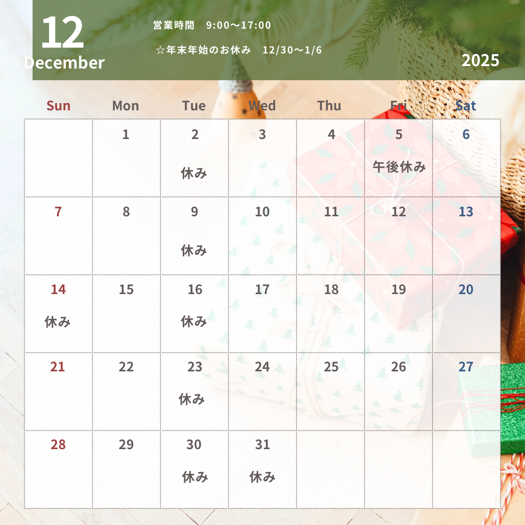 OPEN/9:00~17:00定休日/火曜日・不定休